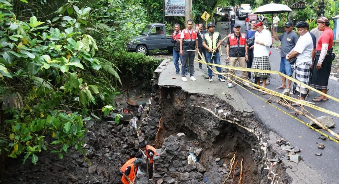 Wabup Made Dirga Tinjau Jalan Rusak Akibat Longsor di Banjar Anyar, Kediri