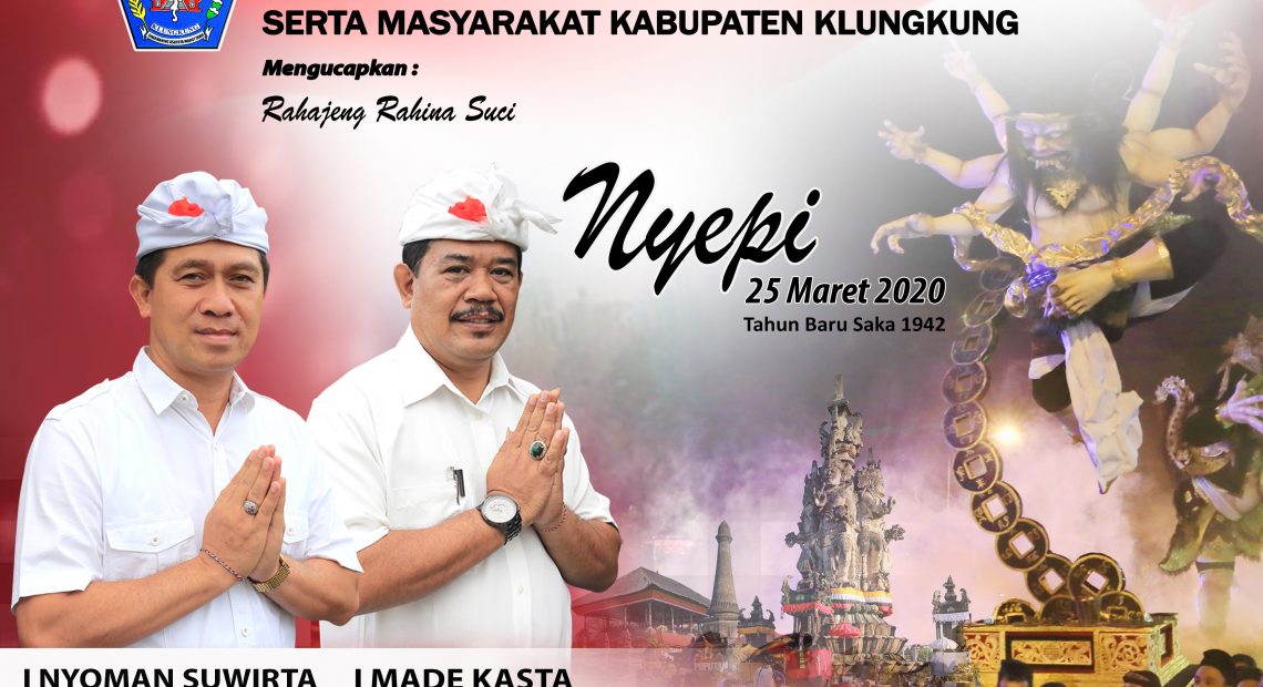 Advetorial Pemerintah dan Jajaran serta Masyarakat Kabupaten Klungkung, Mengucapkan: “Selamat Hari Raya Nyepi Tahun Baru Çaka 1942 (Rabu 25 Maret 2020). Facebook Comments Tags: Bupati dan Wabup Klungkung Mengucapkan Selamat hari Raya Nyepi Post navigation Previous Previous post: Rai Mantra dan Jaya Negara Ucapkan Selamat Hari Suci Nyepi Çaka 1942 Jadi Ajang Mulat Sarira, Tingkatkan Kewaspadaan Diri Sikapi Virus CoronaNext Next post: Pimpinan Beserta Segenap Anggota DPRD Kabupaten Gianyar, Mengucapkan: “Selamat Hari Raya Nyepi Tahun Baru Çaka 1942 (Rabu 25 Maret 2020).