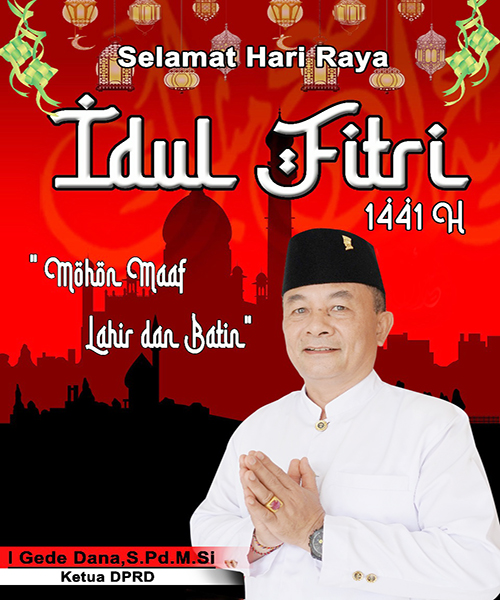 AMLAPURA (CAHAYAMASNEWS). Ketua DPRD Kabupaten Karangasem, I Gede Dana, S. Pd.,M,Si., dan atas nama pimpinan, anggota beserta staf DPRD Kabupaten Karangasem/mengucapkan Selamat Hari Raya Idul Fitri 1441 Hijriah tahun 2020, bagi Umat Muslim khususnya di Karangasem. Ketua DPRD Gede Dana sangat mengapresiasi umat Muslim di Karangasem, untuk tahun ini tidak mudik yang menjadi tradisi tahunan, jadi mereka betul – betul mengikuti imbauan dari Pemerintah, di saat sedang mengalami musibah wabah Virus Corona (Covid-19) sampai saat ini belum berakhir. Hal itu disampaikan Ketua DPRD Gede Dana, di ruang kerjanya, Rabu (20/5/2020).