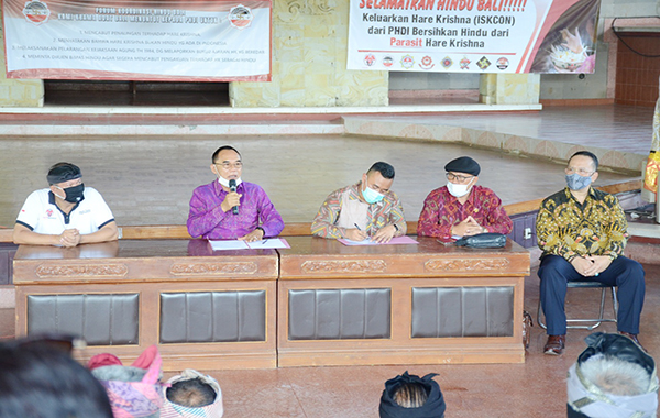 Dalam orasinya Forum Koordinasi Hindu Bali yang dipimpin oleh Ketuanya Drs. I Wayan Bagiarta Negara, Apt., MM.. dan Koordinator Lapangan; Ir. Surya Anom, menyampaikan sejumlah tuntutan maupun dorongan di antaranya; menuntut PHDI Pusat segera mencabut pengayoman terhadap Hare Krishna. Mendorong Ketua DPRD Bali untuk mengeluarkan Peraturan Daerah (Perda) tentang pelarangan segala ajaran dan aktivitas Hare Krishna di Provinsi Bali.