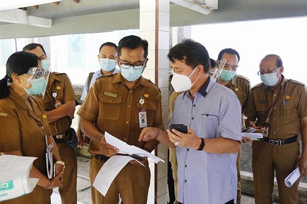 SEMARAPURA (CAHAYAMASNEWS). Guna mengantisipasi Hari Raya Galungan yang akan tiba dan mengetahui perkembangan jumlah ketersediaan ruang untuk perawatan pasien covid-19, Bupati Klungkung I Nyoman Suwirta berkunjung ke Rumah Sakit Umum Daerah (RSUD) Klungkung, Senin (14/9). Kehadiran Bupati Suwirta disambut Kepala Bagian Pelayanan Keperawatan Desak Sriyoni dan sejumlah pegawai RSUD. Dalam Laporannya Desak Sriyoni menyampaikan, bahwa saat ini RSUD Klungkung memiliki ruang isolasi pasien Covid-19 dengan jumlah tempat tidur sebanyak 66. Hingga saat ini ruang isolasi telah terisi sebanyak 46 sehingga sisanya masih berjumlah 20 tempat tidur.