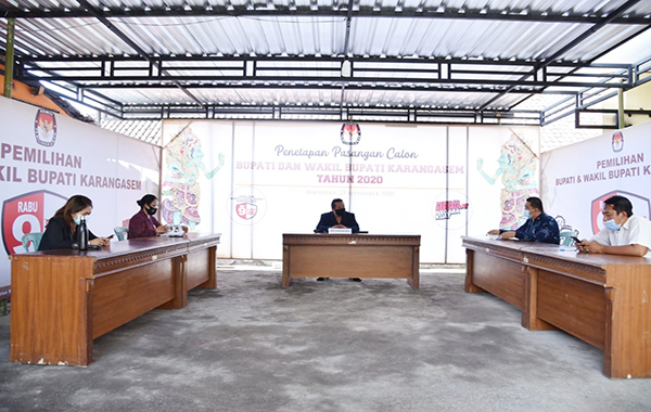 AMLAPURA (CAHAYAMASNEWS). Komisi Pemilihan Umum Daerah (KPUD) Kabupaten Karangasem telah mengumumkan penetapan Bakal Pasangan Calon (Bapalon) Bupati dan Wakil Bupati,  I Gede Dana, S.Pd., M.Si dan Dr. I Wayan Artha Dipa, SH., MH.,  penetapan ini hasil rapat pleno  tertutup yang digelar di Kantor Sekretariat KPUD Karangasem, Rabu 23 September 2020, dipimpin langsung Ketua KPUD Karangasem Ketua KPUD I Gede Krisna Adi Widana.