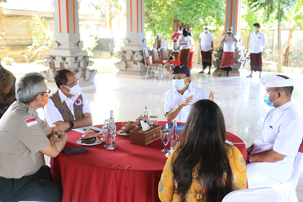 Gubernur Wayan Koster menjelaskan, bahwa Bali terus berupaya menerapkan apa yang menjadi rekomendasi dari pemerintah pusat terkait pariwisata aman bencana, termasuk dalam menghadapi kondisi terkini menyangkut penanggulangan pandemi COVID-19. “Saat ini Bali masih berada dalam kawasan zona merah. Namun kami terus memperketat peraturan penerapan protokol kesehatan kepada masyarakat,” ujarnya.