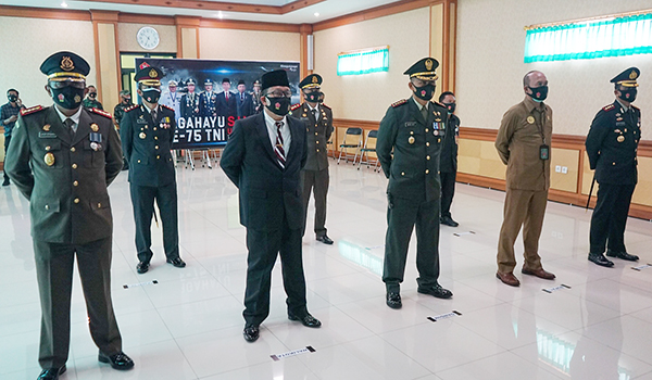 Lebih lanjut dijelaskan, melalui HUT TNI ke-75 ini merupakan sebuah momentum bagi kita semua, khususnya di jajaran pemerintah daerah untuk meningkatkan sinergitas dan saling mendukung dalam menciptakan akselerasi menuju kesejahteraan rakyat. Selain itu, kebersamaan yang sudah terjalin hingga saat ini tentu harus kita pupuk bersama untuk mendukung kemajuan bersama, terlebih dalam penanganan Covid-19 serta pemulihan ekonomi nasional dan daerah.