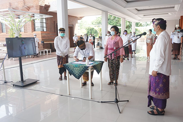 Rai Mantra Lantik Made Toya Sebagai Penjabat Sekda. Masa Pandemi Pelantikan Secara Virtual.