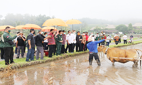 Apalagi Jatiluwih sudah masuk sebagai Warisan Budaya Dunia (WBD) jangan sampai terjadi alih fungsi lahan. “Ini Heritage jangan boleh ada yang mengganggu, tolong Pak Sekda jangan sampai terjadi alih fungsi lahan, supaya ke depan tetap indah dan makin bagus,” pintanya. Atas kondisi tersebut, Menteri Yasin Limpo pun berjanji akan membantu secara maksimal. Khusus mina padi diminta untuk segera diwujudkan. “Ayo bulan depan sudah bisa ditindak lanjuti, ayok kita tembus pasar ekspor,” ajaknya.