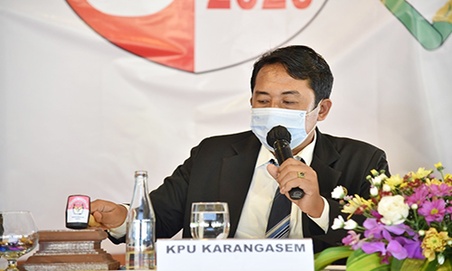 AMLAPURA (CAHAYAMASNEWS). Komisi Pemilihan Umum ( KPU) Karangasem pada Rabu (16/12/2020) menggelar rapat pleno rekapitulasi penghitungan perolehan suara terbuka di tingkat kabupaten,  pemilihan Bupati dan Wakil Bupati Karangasem tahun 2020, bertempat di Puri Bagus Candidasa Karangasem. Rapat tersebut dihadiri kedua saksi Paslon, baik I Made Ruspita saksi Paslon I Gede Dana, I Wayan Arta Dipa (nomor urut 1)  dan I Komang Putra Adnyana saksi Paslon I Gusti Ayu Mas Sumatri, I Made Sukerana (nomor utut 2) serta undangan dari Forkopimda Karangasem dan undangan terkait lainnya.