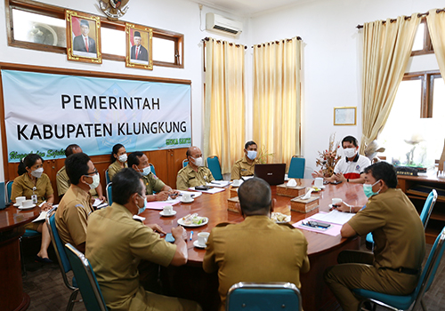 SEMARAPURA (CAHAYAMAS-NEWS). Bupati Klungkung, I Nyoman Suwirta memimpin rapat terkait keikutsertaan Pemkab Klungkung dalam kompetisi Sistem Inovasi Pelayanan Publik (Sinovik) tahun 2021 di ruang rapat Bupati Klungkung, Senin (19/4). Rapat diikuti Kepala Bagian Organisasi, I Putu Arie Gunawan, Kepala Bagian Administrasi Pembangunan, Nyoman Sidang, dan sejumlah OPD terkait lainnya.