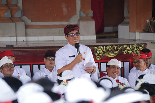 “Kita membangun Tabanan tidak main-main, khusus bagaimana kita meningkatkan kesadaran masyarakat untuk kita ajak kompak bersatu, gotong-royong membangun Tabanan yang kita cintai, persatuan ini sudah raket pisan, becik pisan, tetap ditingkatkan, satu jalur kompak bersatu,” ujar Bupati Sanjaya sembari menekankan tentang pentingnya pelestarian adat, agama dan budaya dalam membangun Tabanan Era Baru yang Aman, Unggul dan Madani.