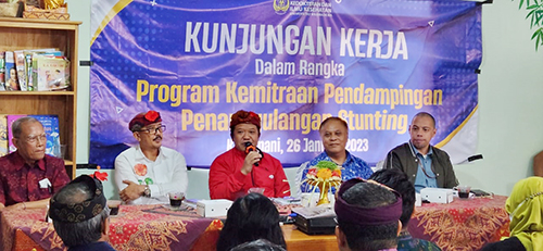 BANGLI (CAHAYAMASNEWS.COM). Kunjungan kerja Dewan Pengarah Badan Riset dan Inovasi Nasional (BRIN) Prof. Dr. Ir. Marsudi Wahyu Kisworo, IPU, bekerjasama dengan Fakultas Kedokteran dan Ilmu Kesehatan (FKIK) Universitas Warmadewa, dalam rangka Program Kemitraan Pendampingan Penanggulangan Stunting di Kabupaten Bangli yang dipusatkan di Kantor Desa Selulung Kintamani, pada Kamis (26/1/2023).