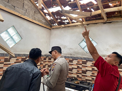 Sementara kondisi dapur korban, mengalami kerusakan. Yang mana, kerasnya  ledakannya sampai menjebol atap dapur korban. Sementara dari identifikasi di TKP, petugas mengamankan barang bukti berupa tabung gas ukuran 3 kg dan selang regulator. Memasang garis polisi di depan dapur.