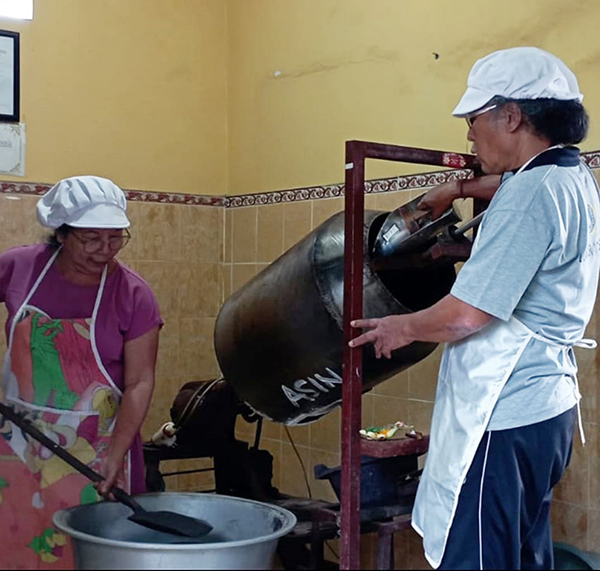 Katanya Jero Mangku belum lama ini, binaan dan alat proses pembuatan kacang asin beberapa alat komponen rakitan bantuan dari Dinas Pertanian Kabupaten Karangasem, serta alat bagian lagi dirancangnya sendiri dengan penggerak aliran listrik. Volume suara alat pemerosesan kacang sangat kecil tanpa menggangu lingkungan sekitar. Juga dapat binaan dari pemerintah melalui Dinas Perindustian dan Perdagangan Kabupaten Karangasem. Sebelumnya, pada awal mulai pembuatan kacang asin secara manual pakai alat penggorengan.
