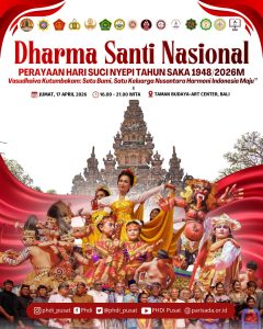 Puncak perayaan Hari Suci Nyepi Tahun Saka 1948 berupa Dharma Santi Nasional 2026 akan digelar di panggung terbuka Arda Candra Taman Budaya (Art Center) Denpasar pada Jumat (17/4) pukul 16.00 WITA – selesai. Beragam acara akan digelar untuk memeriahkan Dharma Santi Nasional ini. Lebih jauh Ketua PHDI Pusat Wisnu Bawa Temaja atau yang akrab disapa WBT menjelaskan, tema besar yang diangkat menegaskan filosofi universal.