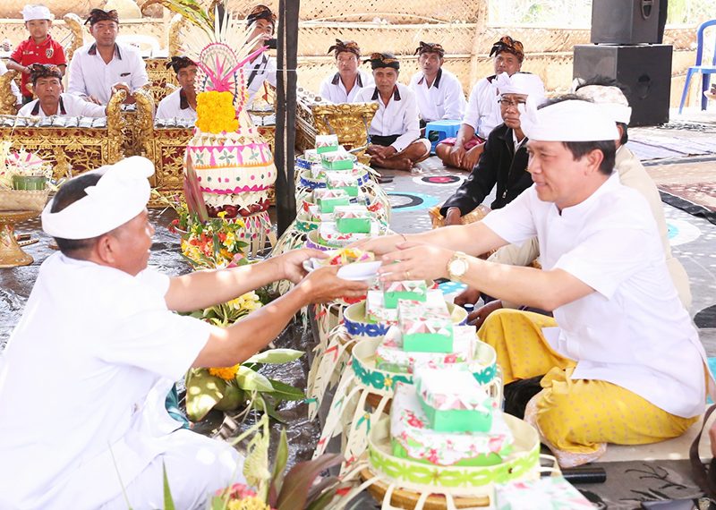 SEMARAPURA. CAHAYAMASNEWS.COM Wakil Bupati Klungkung I Made Kasta menghadiri puncak upacara Ngeroras di Desa Adat Gembalan Kecamatan Klungkung Senin, (23/9). Kehadiran Wabup Made Kasta disambut Camat Klungkung Komang Wisnuadi, Perbekel Desa Selat, prajuru Adat serta puluhan masyarakat yang tengah mempersiakan upacara ngeroras di Balai Desa Adat Gembalan. Ketua Panitia